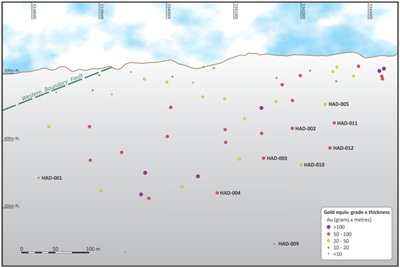 - All eight drill holes intersected mineralization (see Table 1), with drill hole HAD-012 returning 22.0 metres of 2.73 grams per tonne gold equivalent (g/t AuEq).